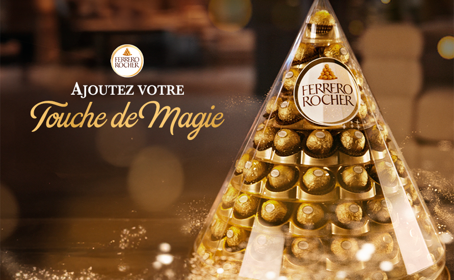 Partagez la magie des fêtes et tentez de remporter une grande pyramide Ferrero Rocher ou un coffret de 4 flûtes Fererro Rocher.